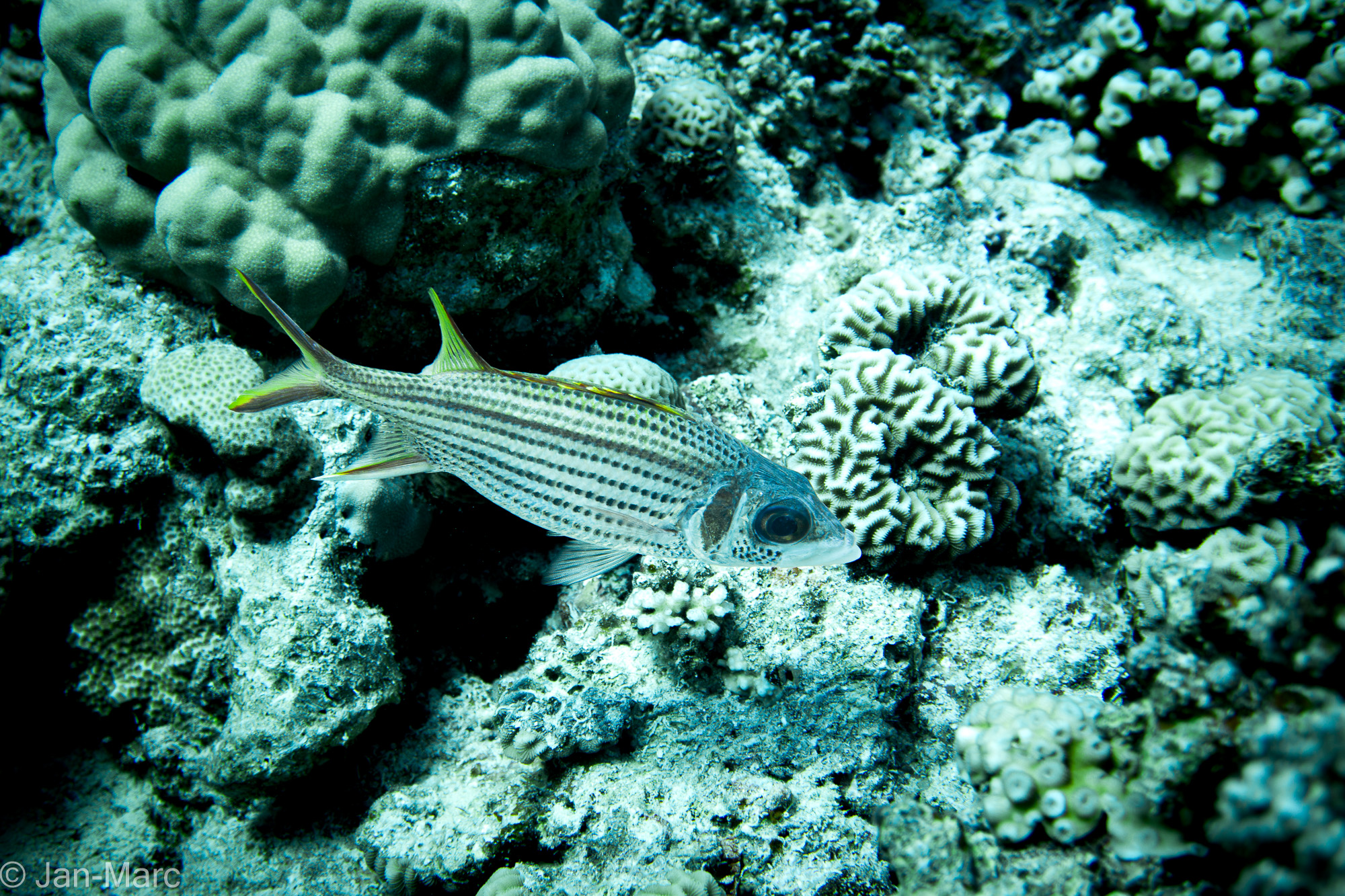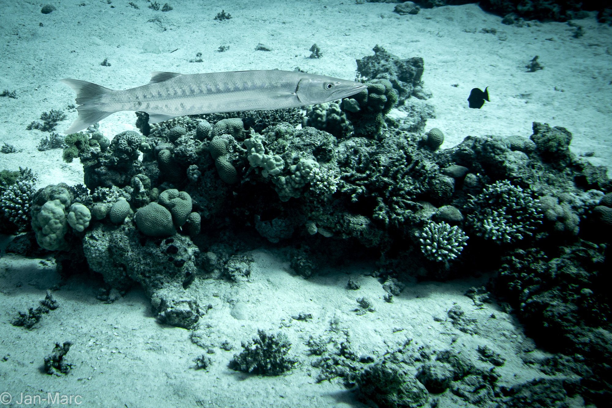 Das Riff liegt etwas weiter draußen im Roten Meer und bietet eine abwechslungsreiche Unterwasserlandschaft aus Korallenblöcken, kleinen Überhängen und sandigen Bereichen. Schon beim Abtauchen fällt auf, wie lebendig dieser Platz ist. Zwischen den Korallen bewegen sich Schwärme kleiner Rifffische, während sich in den Spalten immer wieder größere Bewohner verstecken.